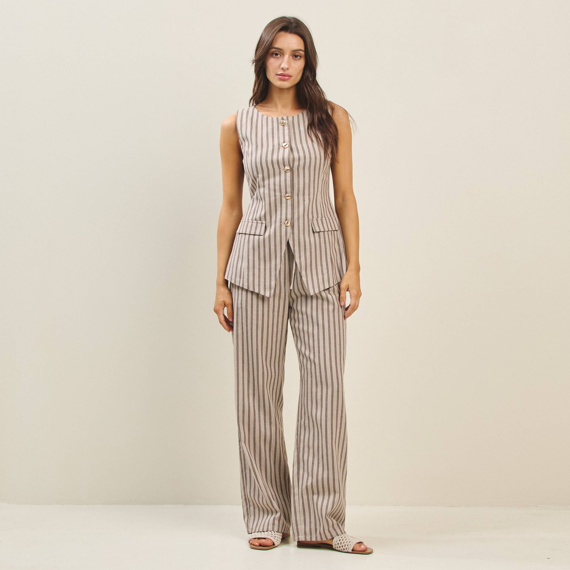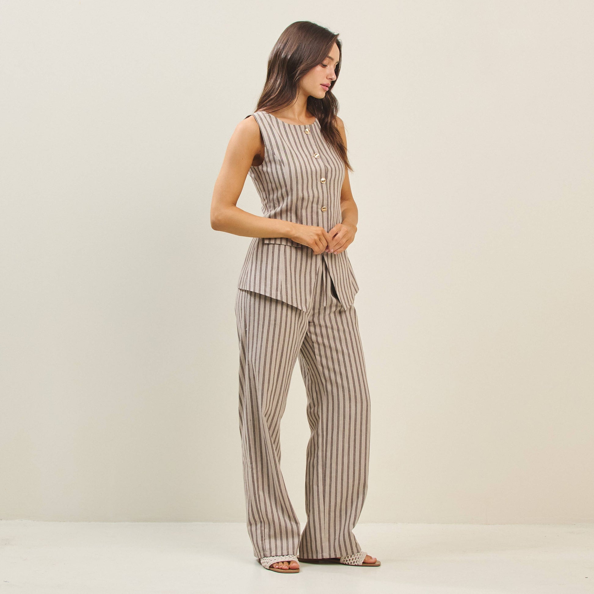 Striped elastic waist pants