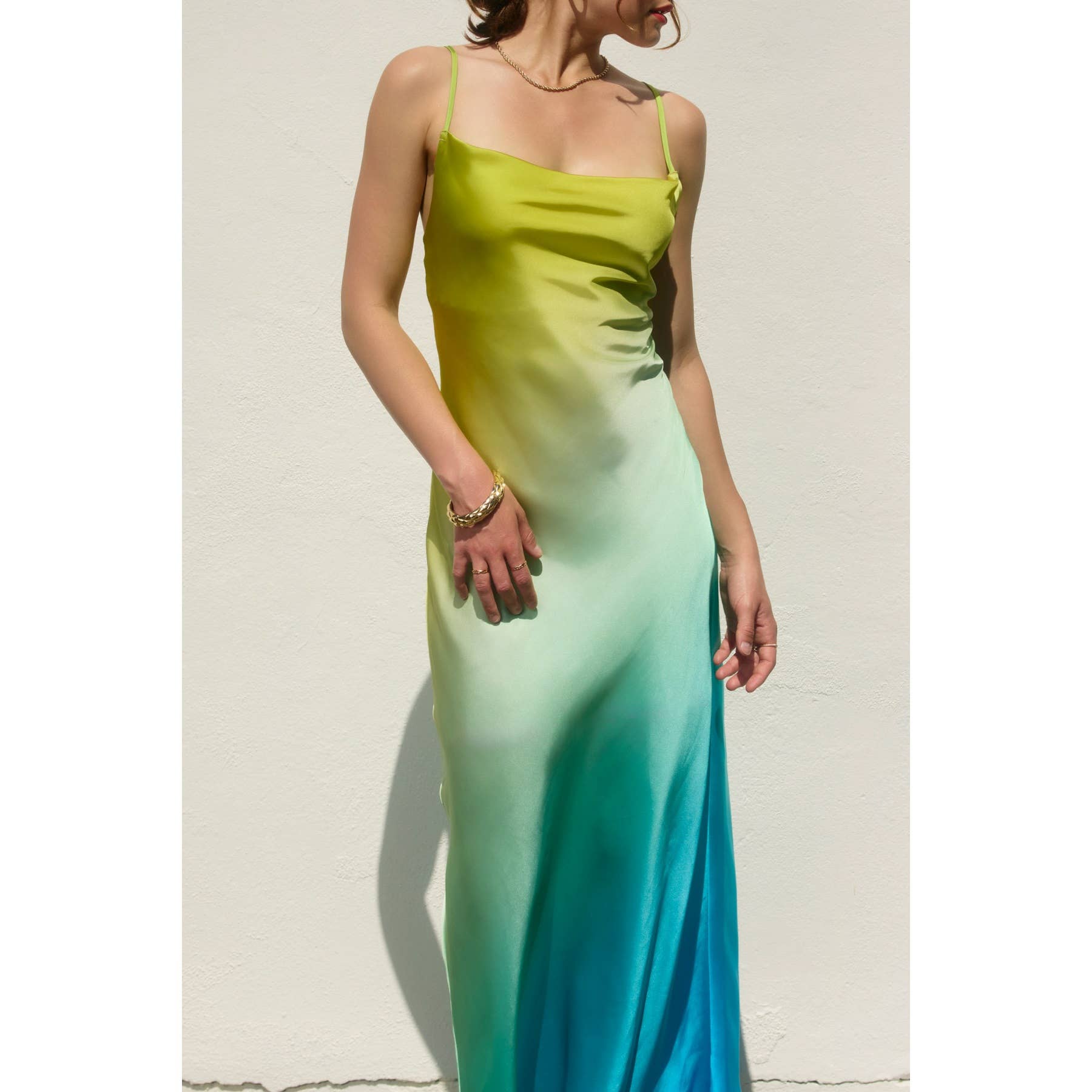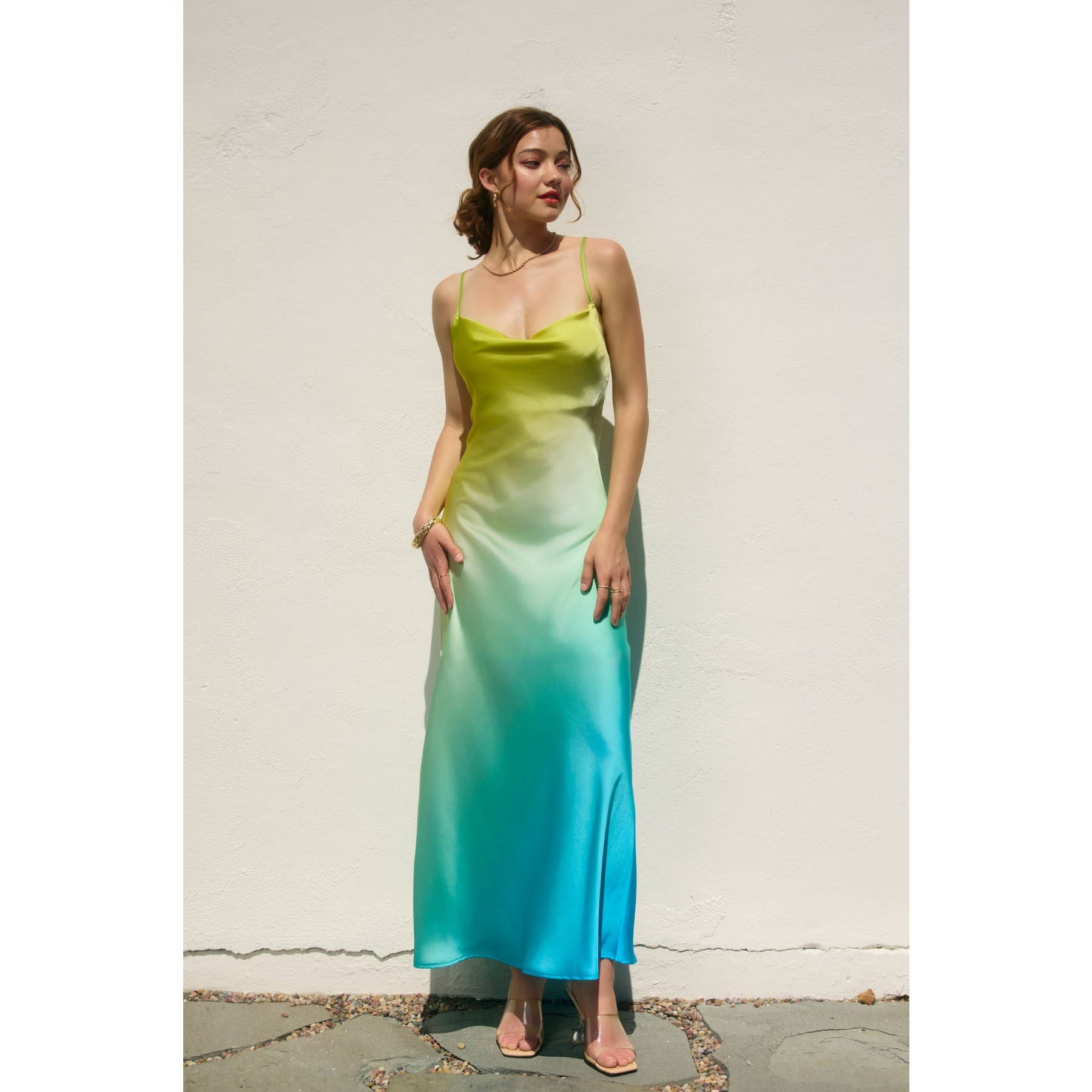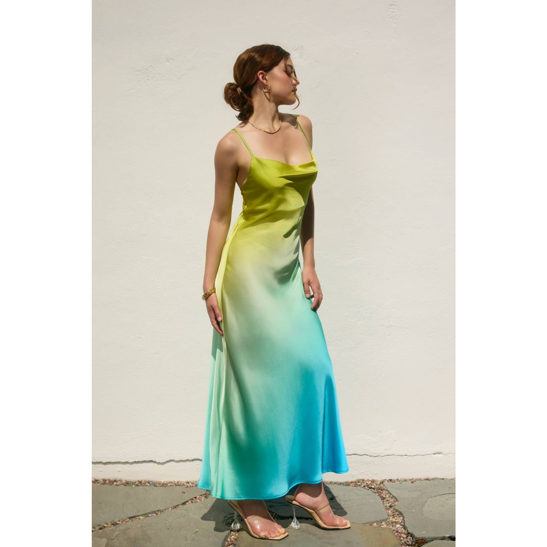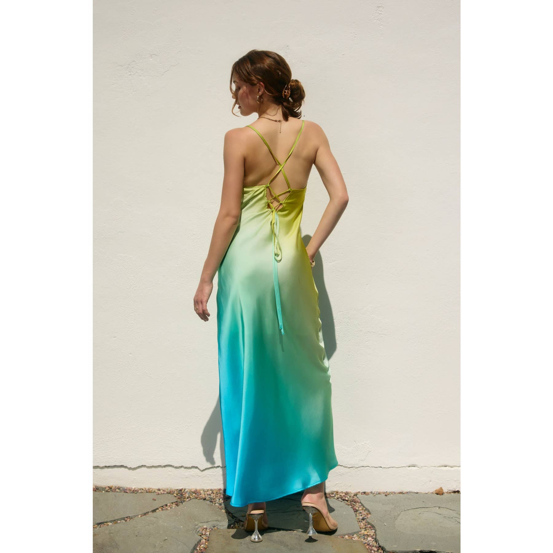 - Subtle cowl neckline - Back adjustable criss cross tie closure - Self fabric lined at the bust -