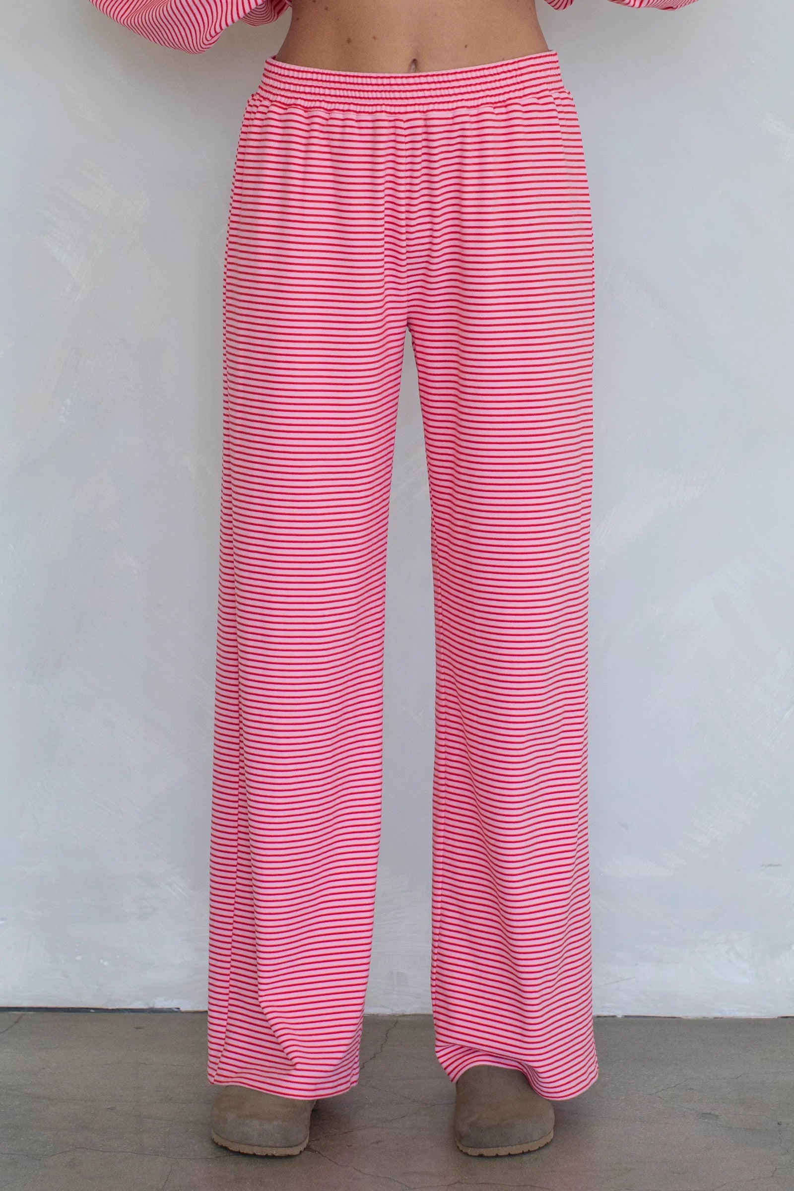 Pink striped elastic waist lounge pant, butter soft!! Pair with our Frankie top to complete the look!