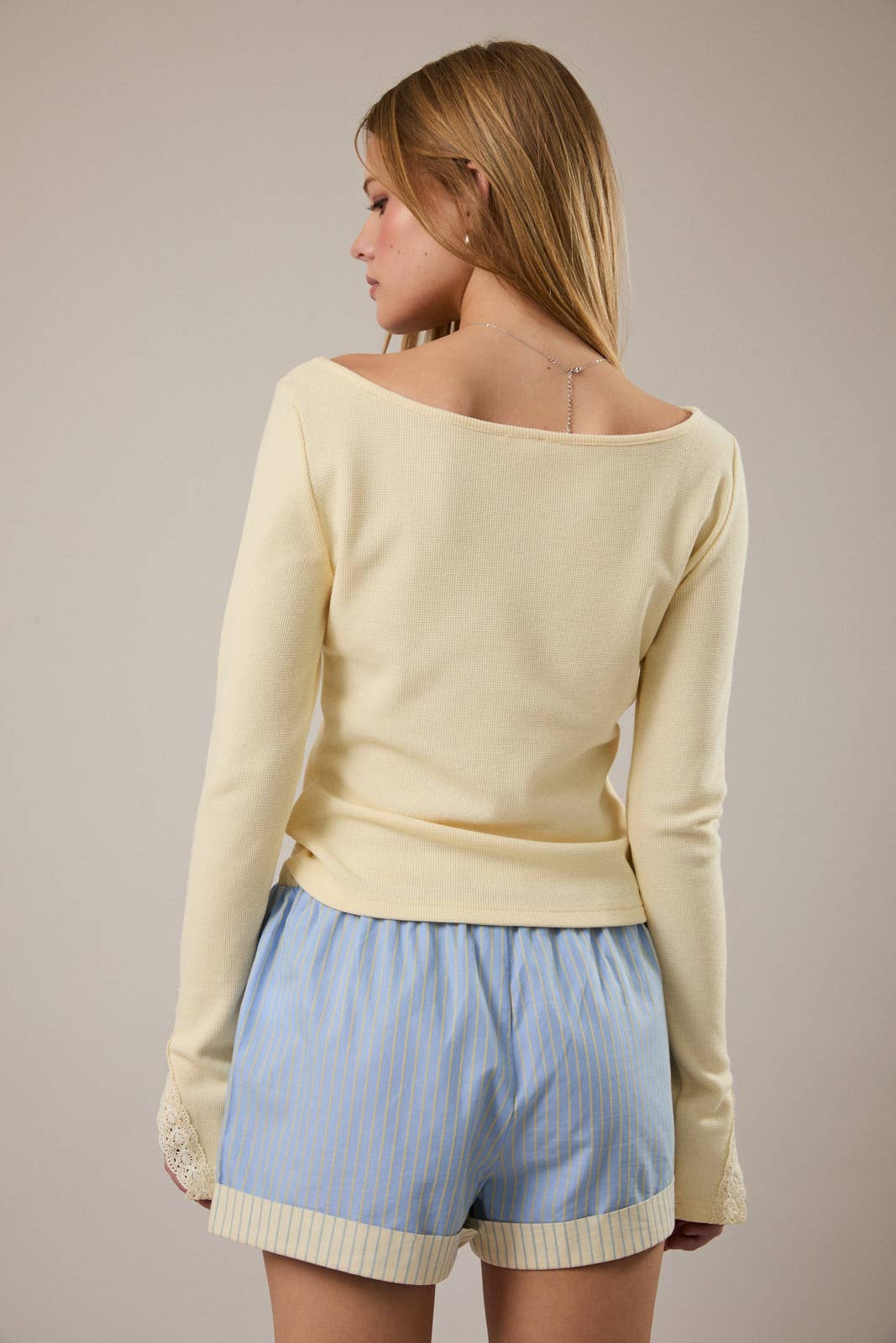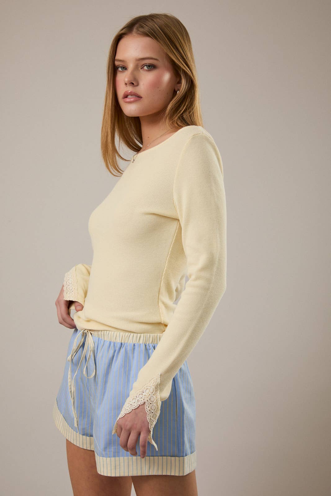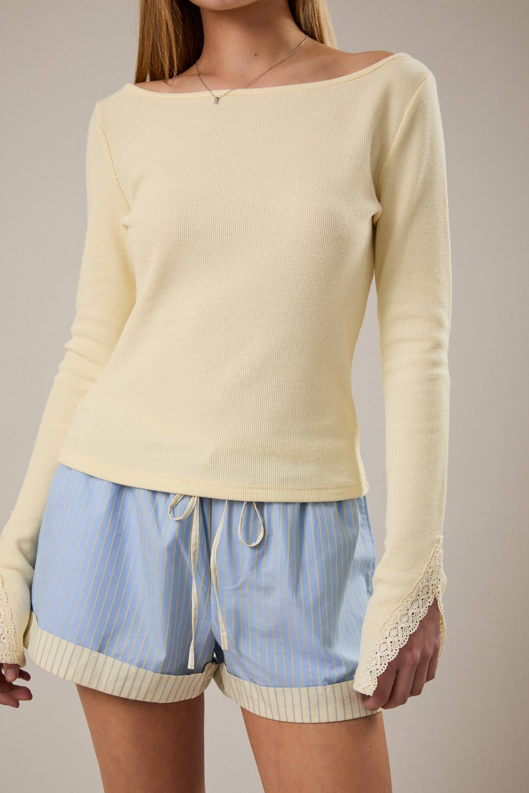 Long sleeve knit top with lace detail at sleeves