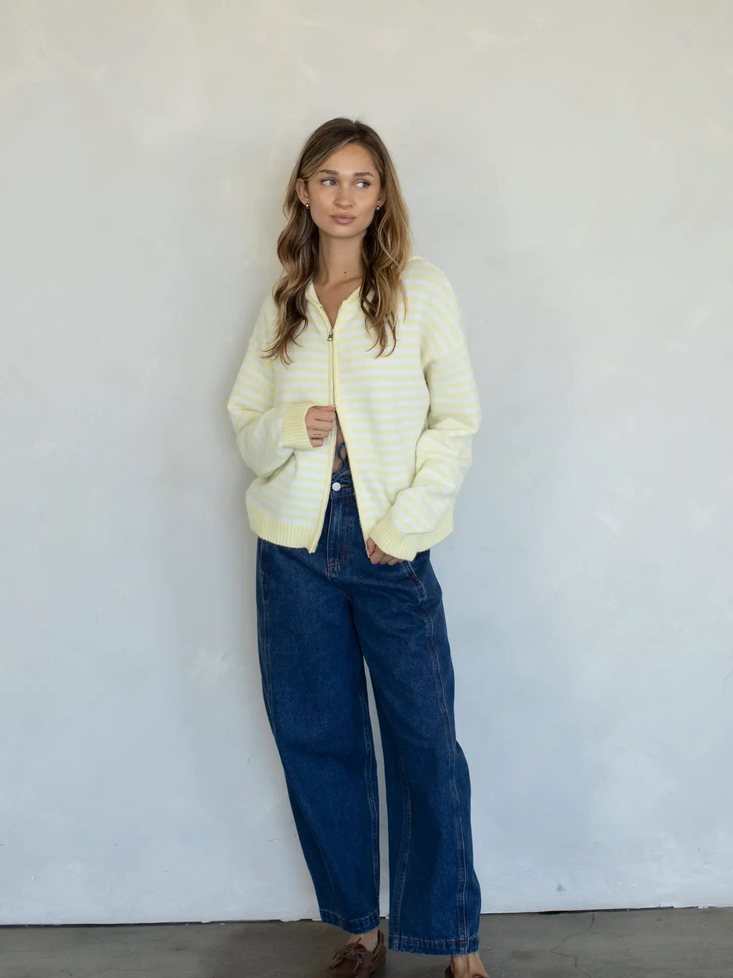 Striped zip up sweater with hood