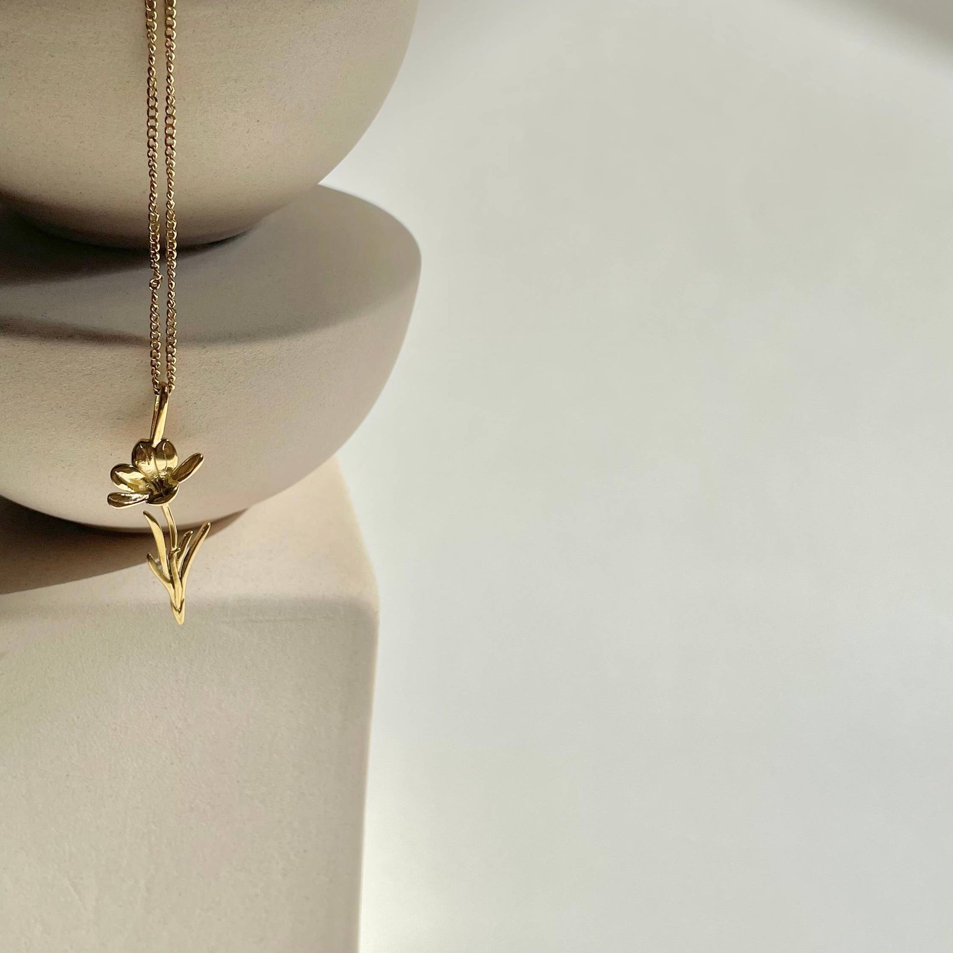 This Crocus Necklace is imbued with happiness and joy. Finely crafted with a crocus flower pendant, this necklace is a perfect accessory for any occasion. Show your love with this beautiful piece.