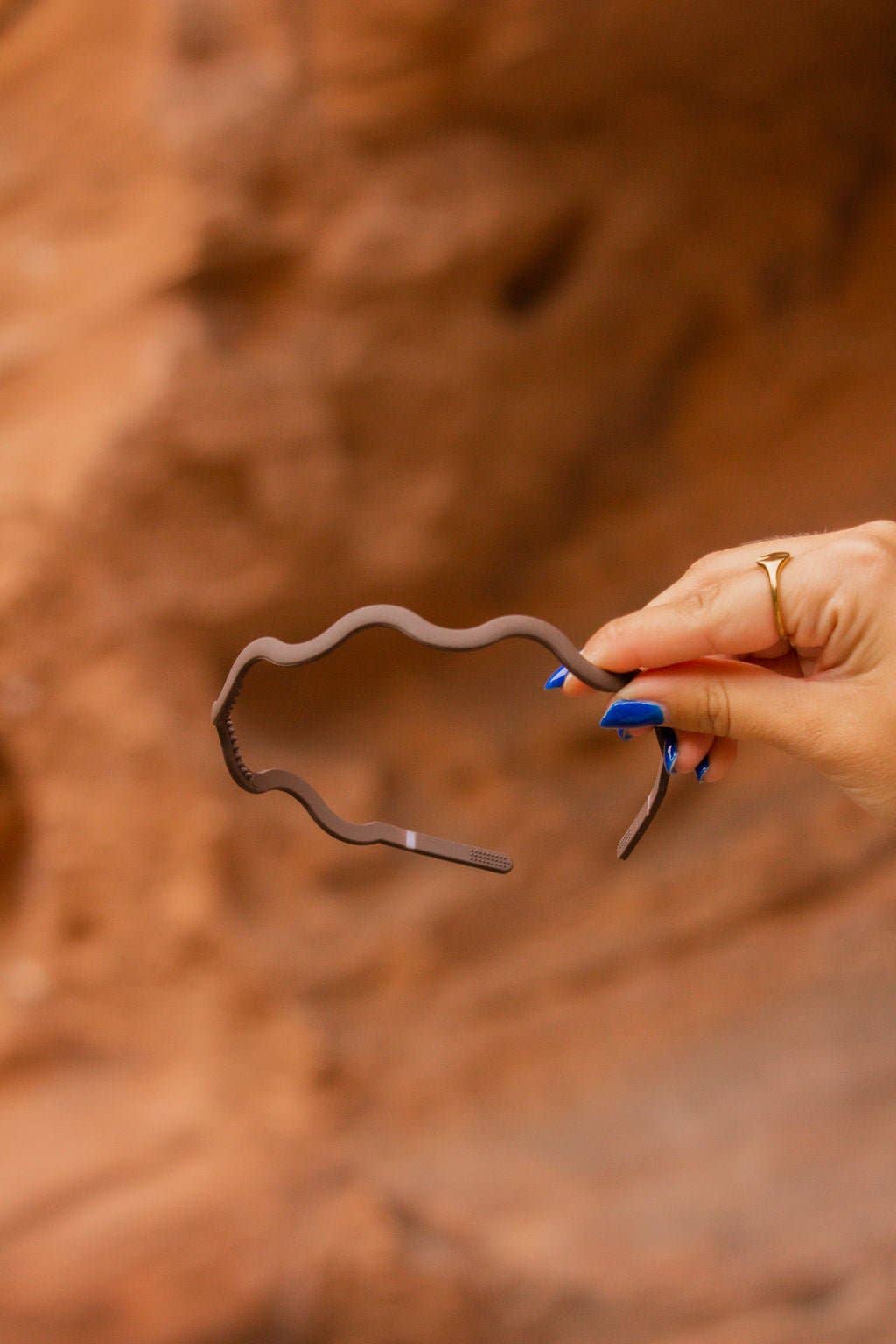 This headband is a thin, hard band, with a wavy design. It will effortlessly match any vibe and any occasion. Match this headband with a chill, stay at home, outfit; pair it with a fancy date night dress, and anything in-between.