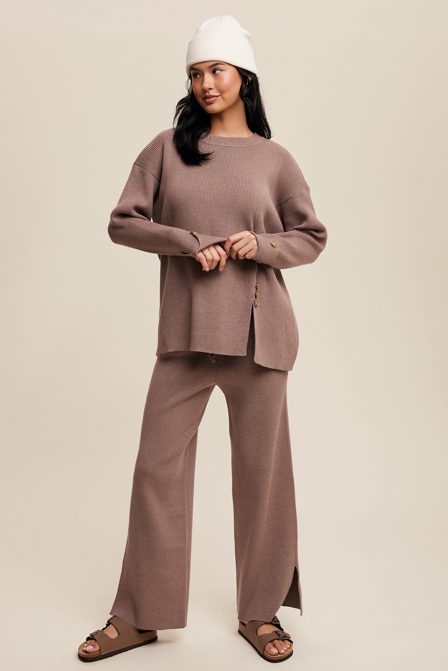 - Crew neck - Long sleeve with folded cuffs - Slit on front with buttons