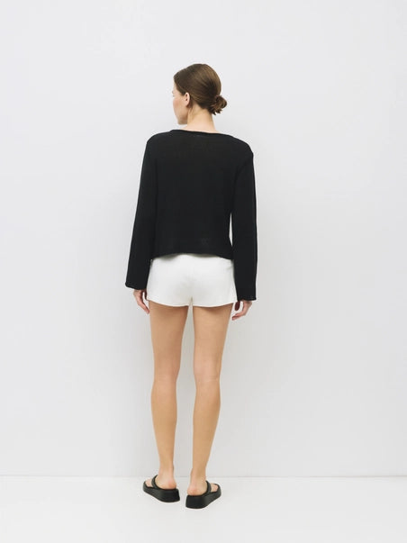 The Tala Sweater is a comfy long-sleeve piece featuring a unique front cut-out with a button closure for added flair. With its drop shoulder design and soft low gauge knitting, this sweater offers a relaxed fit that’s perfect for casual wear.