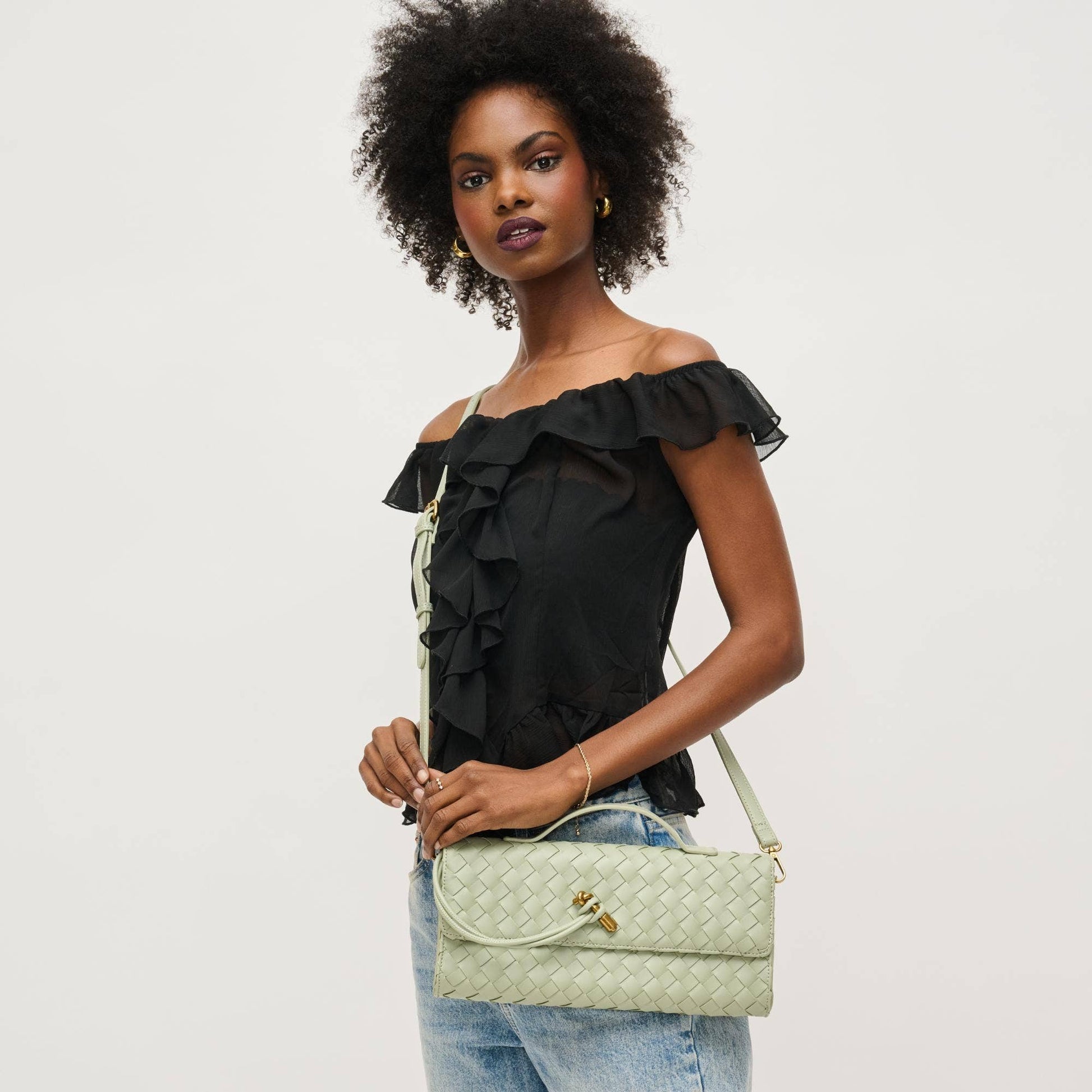 Experience the elegance and functionality of the Ada Top Handle Woven East West Clutch Crossbody by Urban Expressions. This clutch is meticulously crafted from high-quality vegan leather, embodying the brand's commitment to ethically designed, stylish, and practical accessories. Whether you're heading out for a date night or a weekend adventure, this clutch is the perfect companion, seamlessly transitioning from day to night. Make a statement and showcase your conscious fashion choices with this stunning clutch.